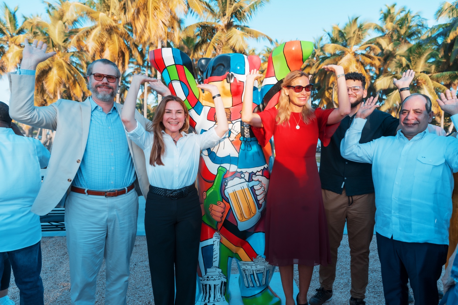 La colocación del oso amistoso fue encabezada por la alcaldesa del Distrito Nacional, Carolina Mejía, y la embajadora alemana en República Dominicana, Maike Friedrichsen.