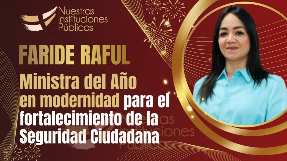 Santo Domingo.— En un año donde la seguridad ciudadana dejó de ser un tema de opinión y se convirtió en una urgencia nacional, la ministra de Interior y Policía, Faride Raful, cierra el 2025 con un balance que combina resultados medibles, coordinación interinstitucional y una visión moderna de prevención. Por esas razones, el portal Nuestras Instituciones Públicas —plataforma privada dedicada a informar y reconocer el desempeño de las instituciones del Estado y sus funcionarios— le otorga el reconocimiento: “Ministra del Año en modernidad para el fortalecimiento de la Seguridad Ciudadana”.