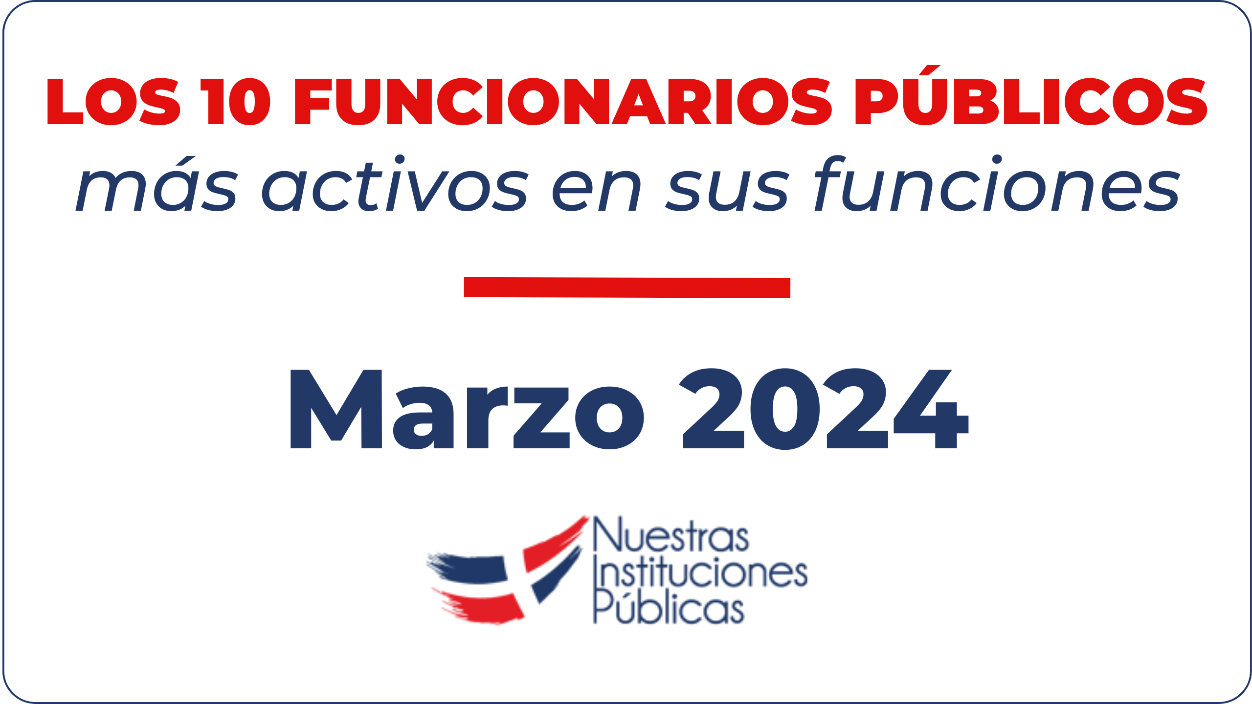 En un listado entre 100 funcionarios, los siguientes fueron los 10 más seleccionados como funcionarios más activos en sus funciones: