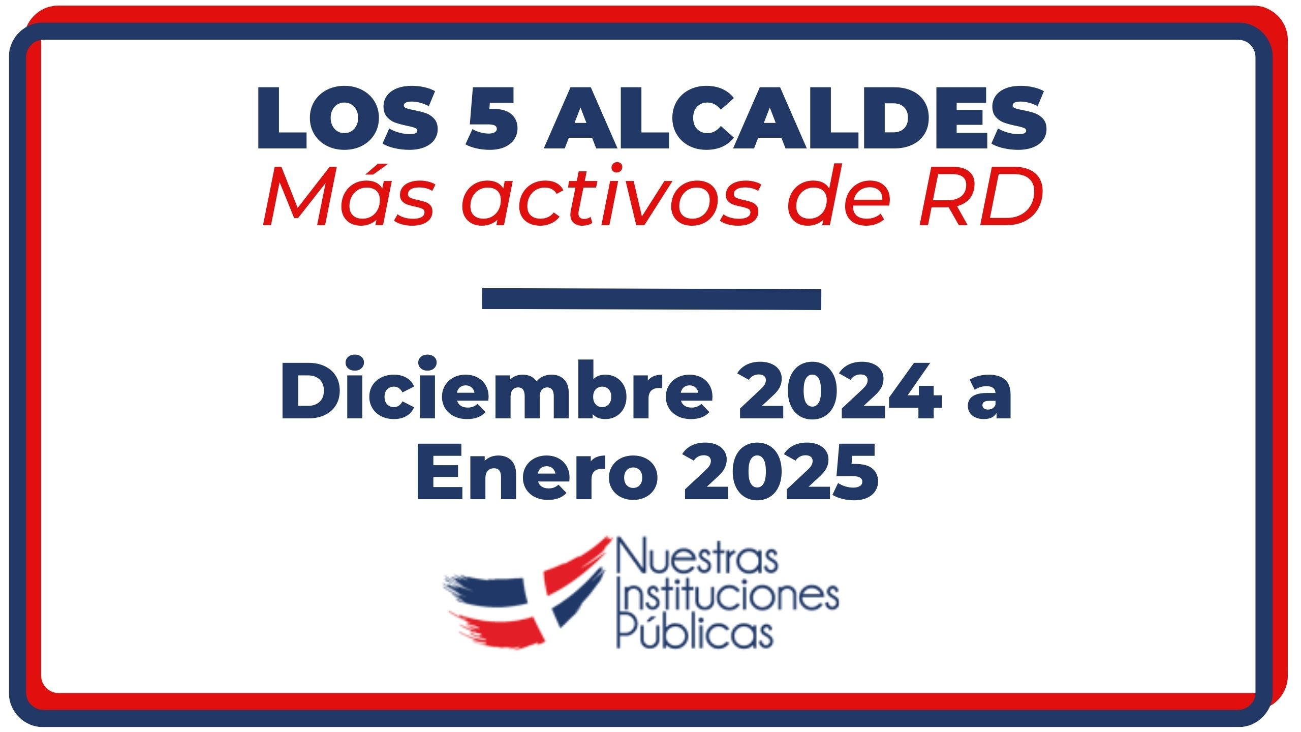 El portal Nuestras Instituciones Publicas muestra cada mes el top 5 de los alcaldes más activos de la República Dominicana. Es una forma de reconocer el accionar de los máximos responsables del gobierno municipal