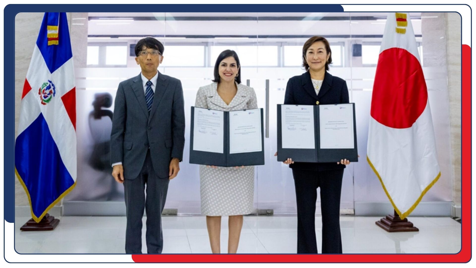 El Centro de Exportación e Inversión de la República Dominicana (ProDominicana) que dirige Biviana Riveiro y la Organización de Comercio Exterior de Japón (JETRO), firmaron un Memorando de Cooperación (MOC) con el objetivo de fortalecer las relaciones económicas bilaterales y promover nuevas oportunidades de comercio e inversión entre Japón y la República Dominicana.