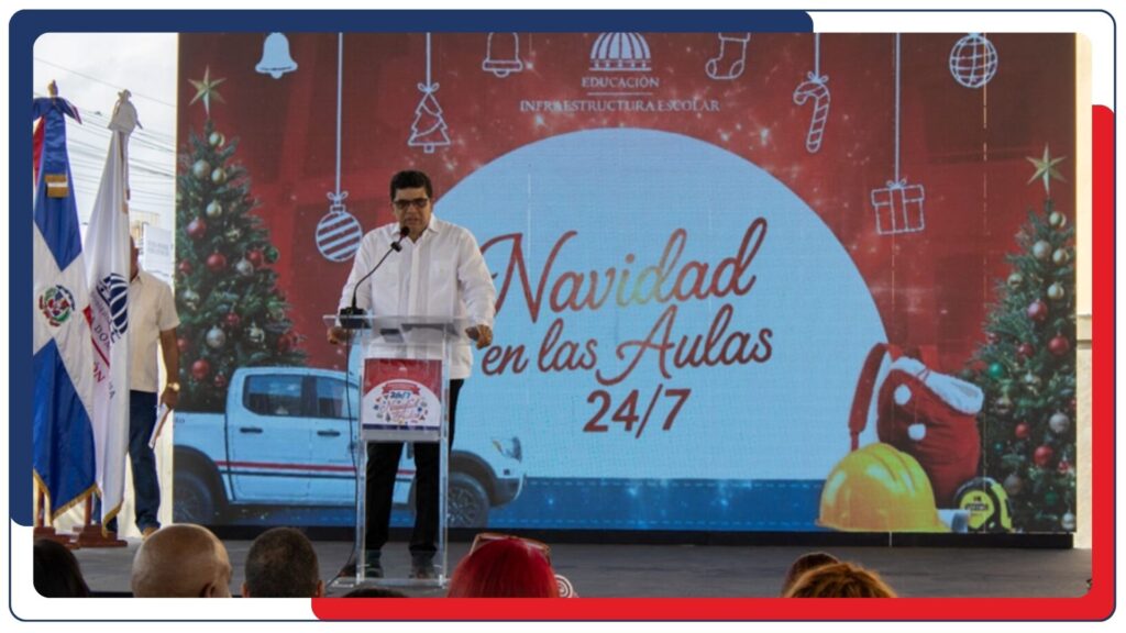 El alcalde de Santo Domingo Este, Dío Astacio, resaltó la importancia de “Navidad en las Aulas 24/7”, programa que puso en marcha el Gobierno de la República Dominicana, a través de la Dirección de Infraestructura Escolar (DIE) del Ministerio de Educación, en el Centro Educativo San Vicente de Paúl, en Los Mina, con el objetivo de entregar aulas en mejores condiciones al inicio del próximo año escolar.